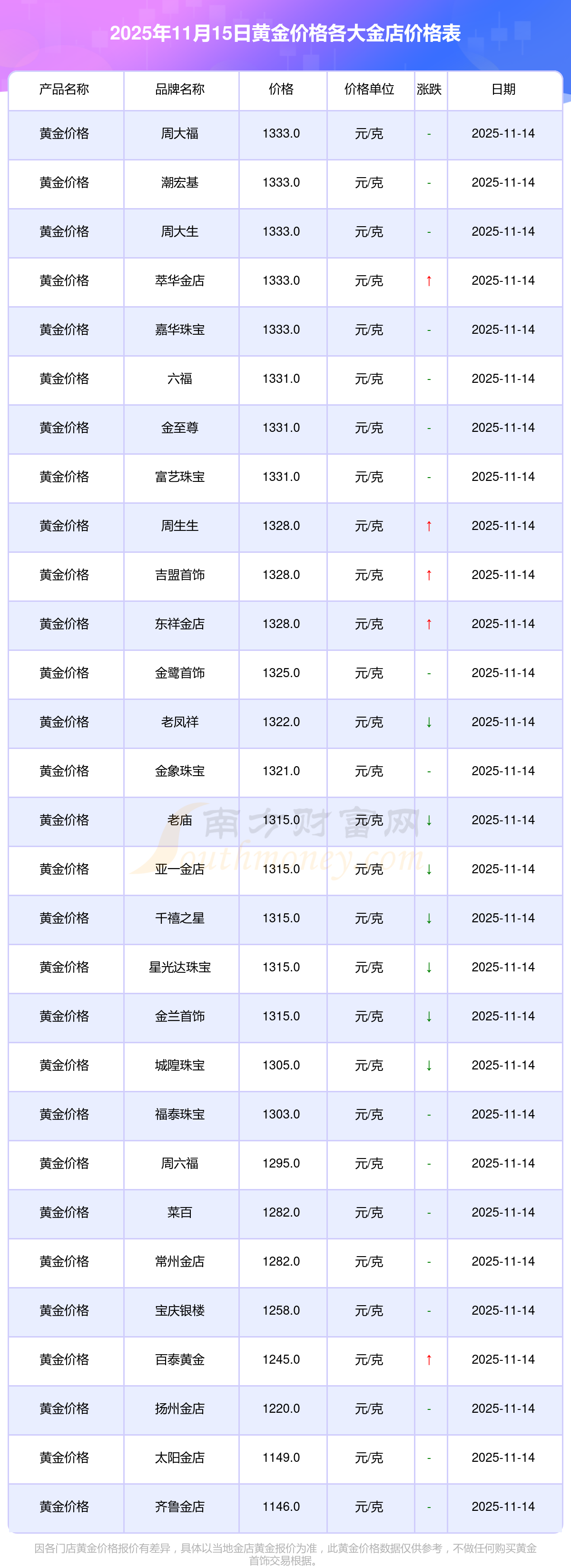 今日黄金价格来了_2025年11月15日各金店黄金价格多少1克?