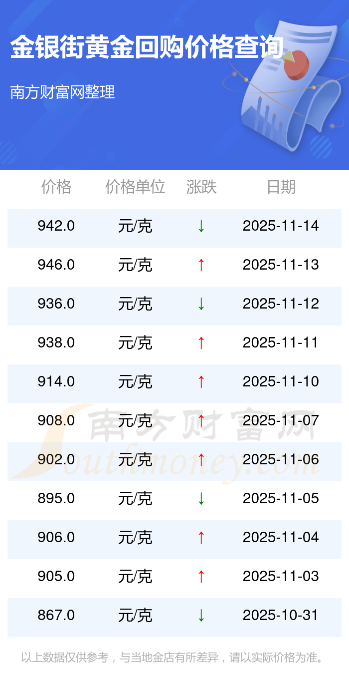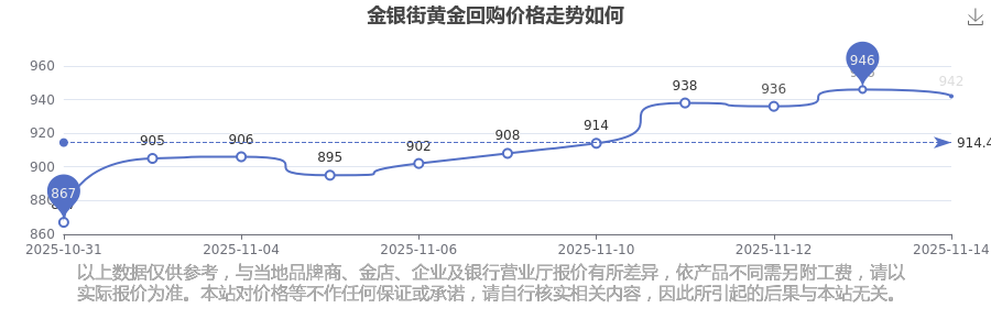 今日金银街黄金回购价格为942.0元/克。