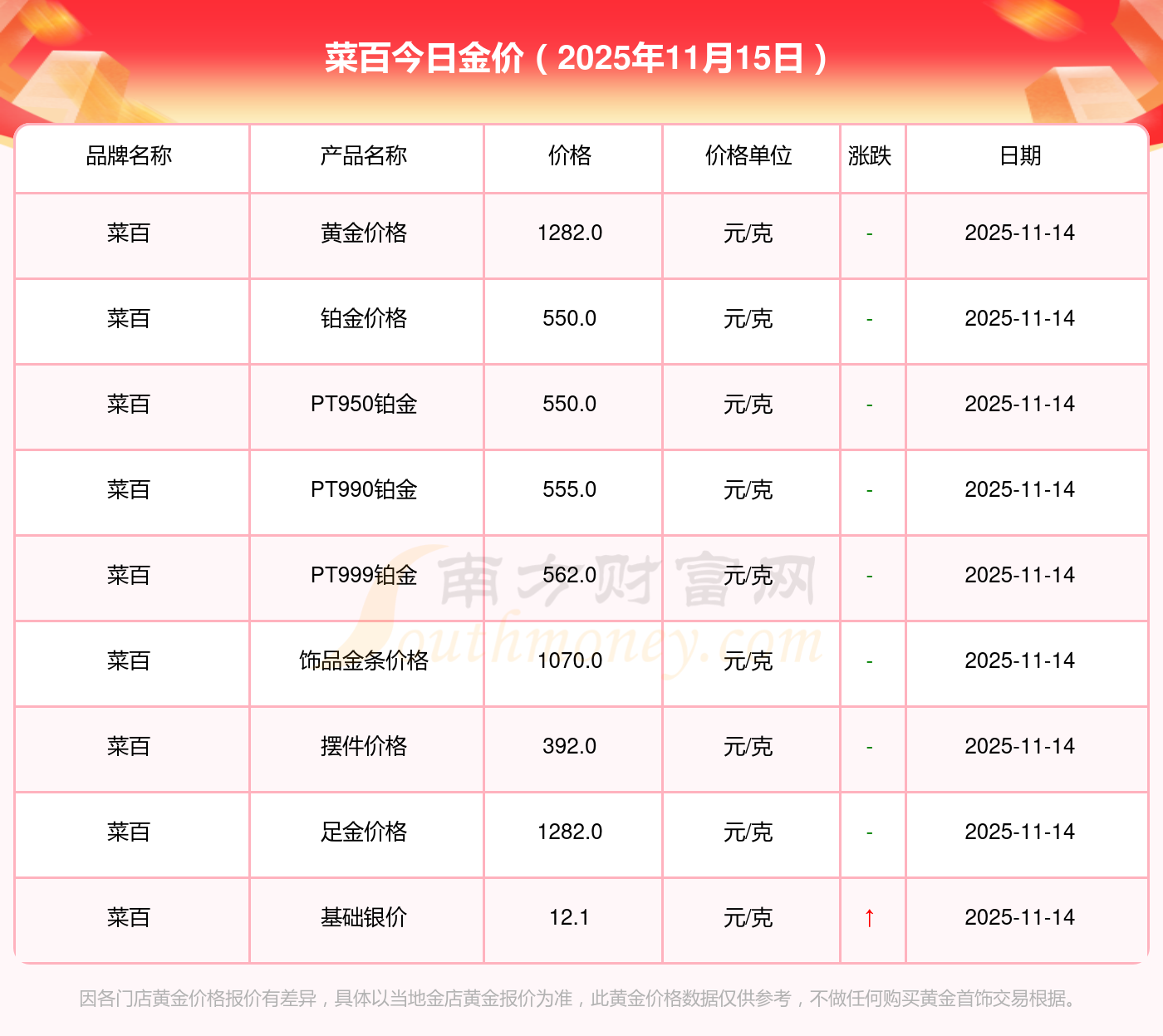 以上数据仅供参考,与当地金店有所差异,请以实际价格为准。
