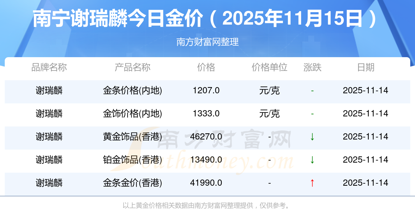 2025今日金价查询表__南宁最新谢瑞麟今日金价多少钱一克?