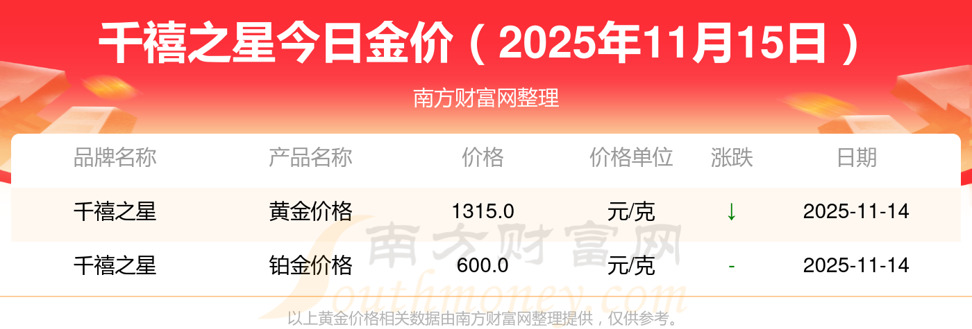 以上数据仅供参考,与当地金店有所差异,请以实际价格为准。