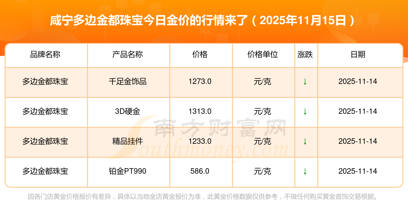 咸宁多边金都珠宝当下黄金一克的价钱是多少?