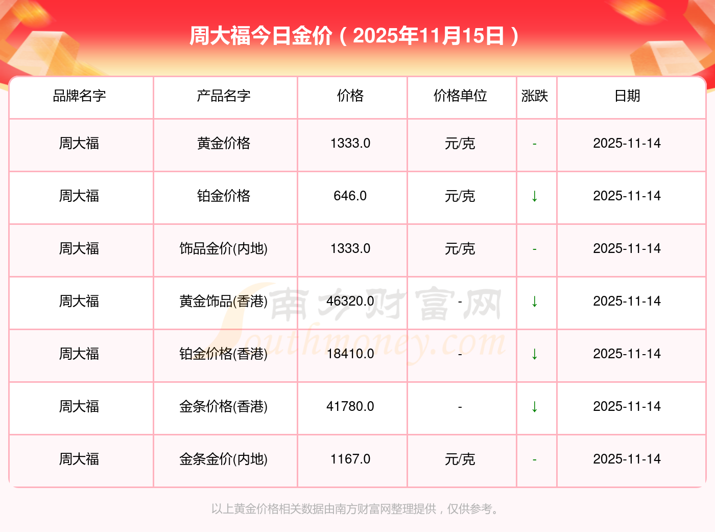以上数据仅供参考,与当地金店有所差异,请以实际价格为准。