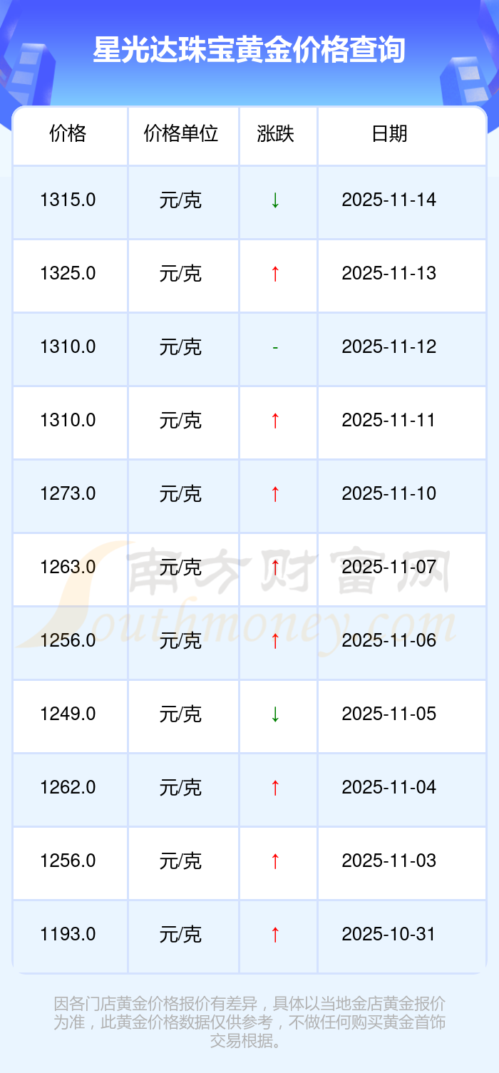 2025年11月15日星光达珠宝黄金价格今天多少一克,最新查询来了,一起来看看吧!