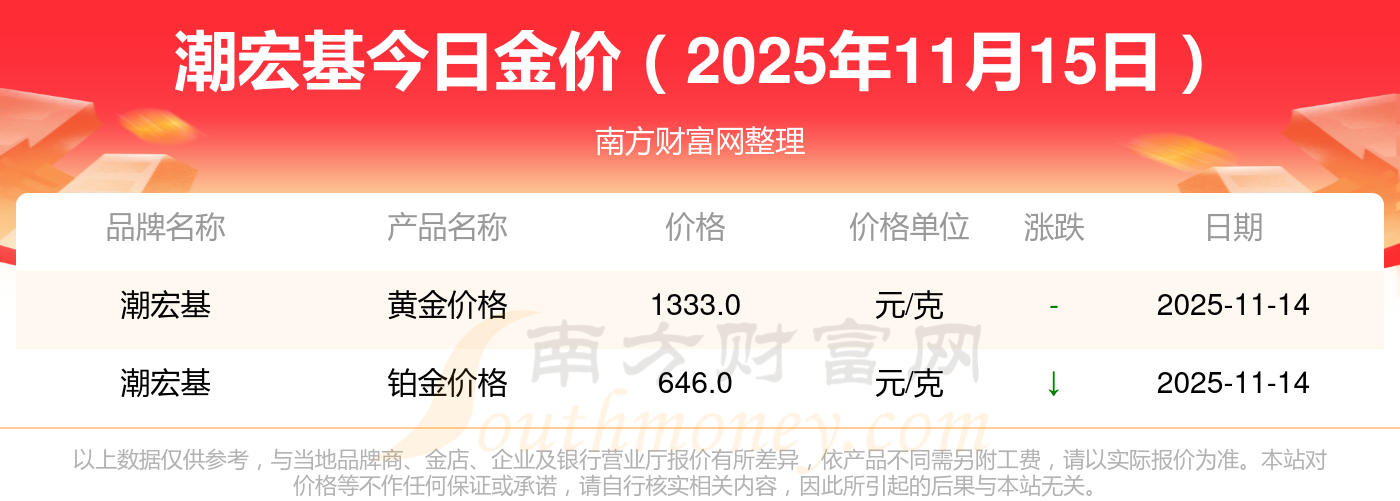 以上数据仅供参考,与当地品牌商、金店、企业及银行营业厅报价有所差异,依产品不同需另附工费,请以实际报价为准。本站对价格等不作任何保证或承诺,请自行核实相关内容,因此所引起的后果与本站无关。