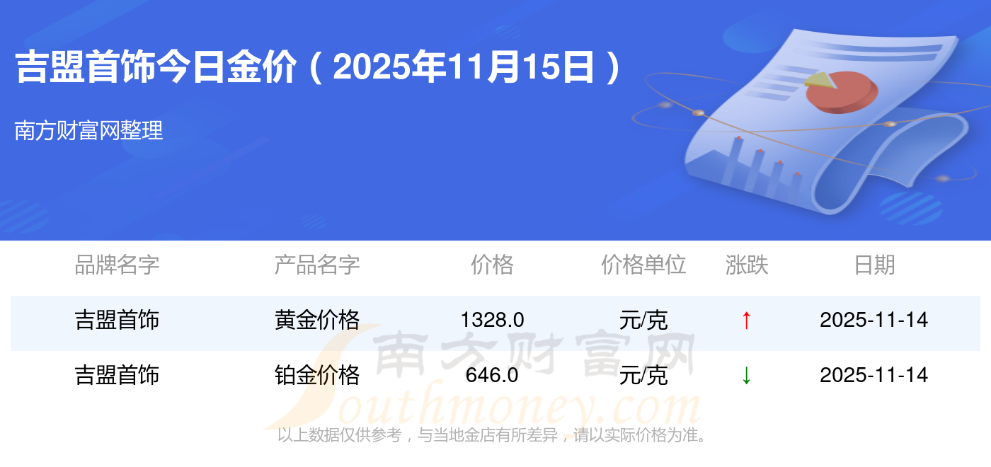 2025年11月15日,周大福、周大福、周大福、周大福、周大福、周大福、周大福、老凤祥、老凤祥、老凤祥、周六福等各大金店品牌黄金价格今日价格如下:周大福1333.0元/克、周大福646.0元/克、周大福1333.0元/克、周大福46320.0、周大福18410.0、周大福41780.0、周大福1167.0元/克、老凤祥1322.0元/克、老凤祥600.0元/克、老凤祥1322.0元/克、周六福1295.0元/克。