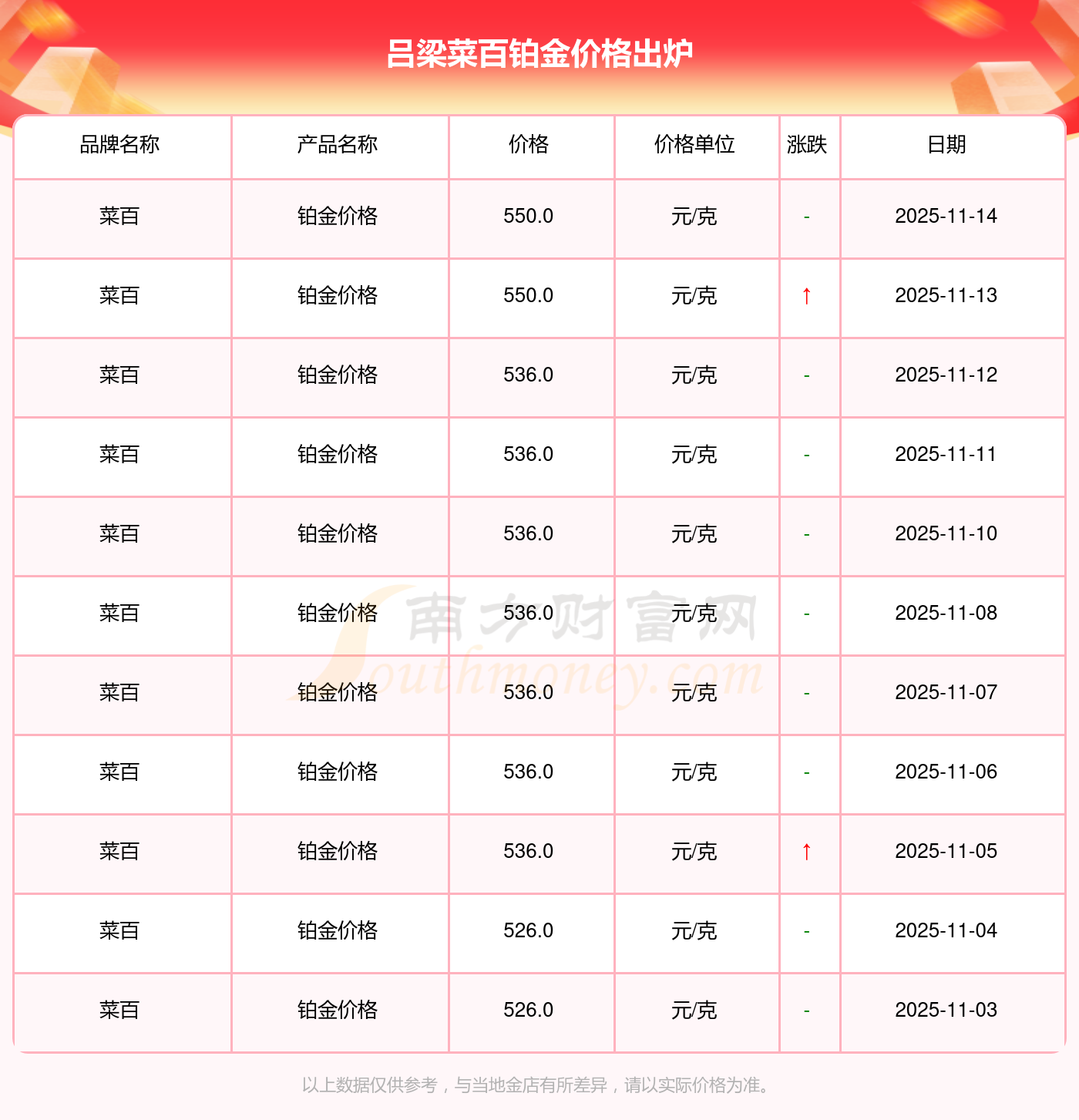 以上数据仅供参考,与当地金店有所差异,请以实际价格为准。