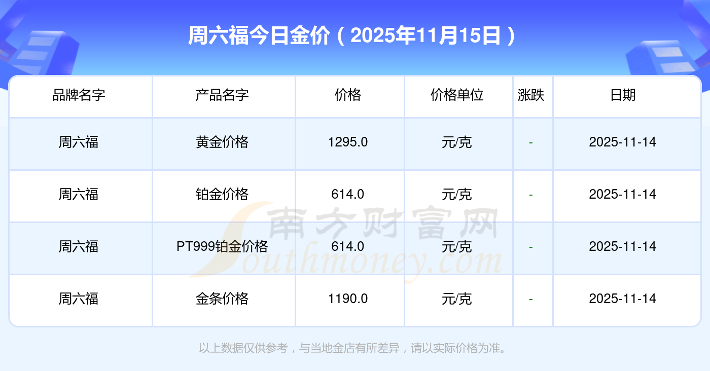 以上数据仅供参考,与当地金店有所差异,请以实际价格为准。