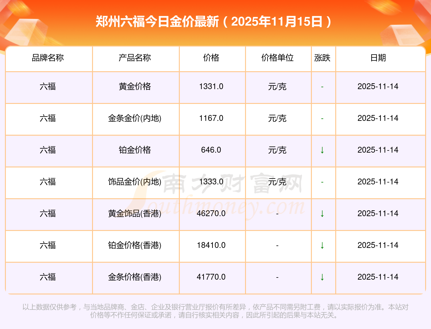 以上黄金价格相关数据由南方财富网整理提供,仅供参考。