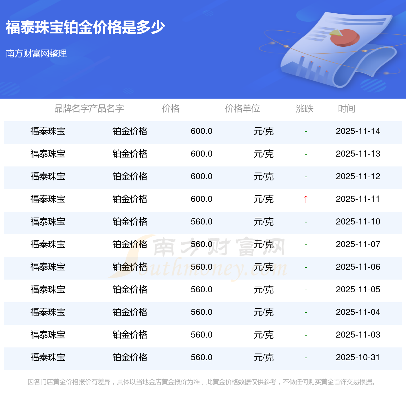 以上数据仅供参考,与当地品牌商、金店、企业及银行营业厅报价有所差异,依产品不同需另附工费,请以实际报价为准。本站对价格等不作任何保证或承诺,请自行核实相关内容,因此所引起的后果与本站无关。