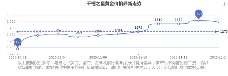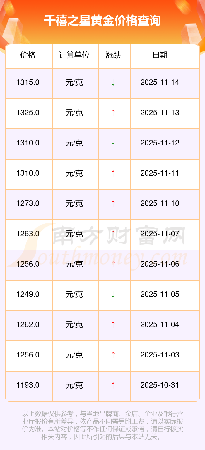 今天黄金价位怎样呢?现在每克黄金卖多少钱?黄金每克的价位一般在什么水平呢?今日千禧之星黄金价格的价格是1315.0元/克。