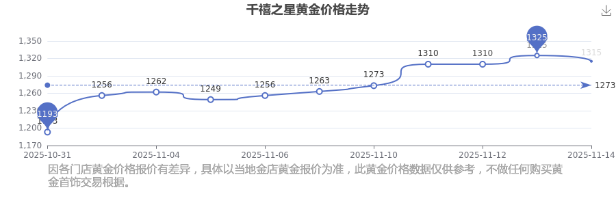 据了解,今日千禧之星 黄金价格的最新价格为1315.0元/克。