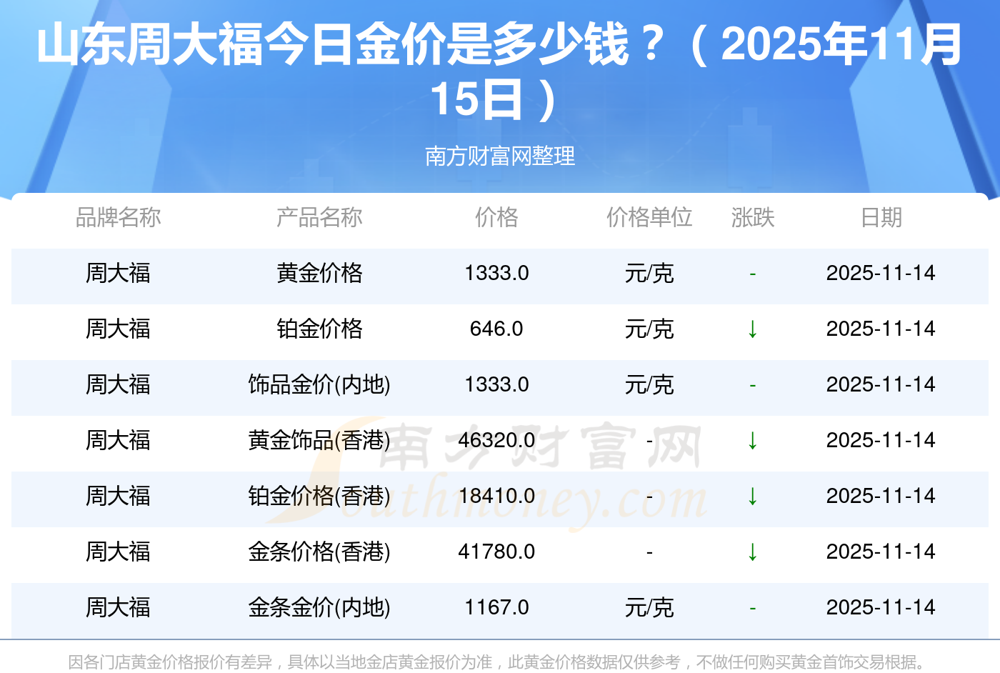 黄金价格1333.0元/克,铂金价格646.0元/克,饰品金价(内地)1333.0元/克,黄金饰品(香港)46320.0,铂金价格(香港)18410.0,金条价格(香港)41780.0,金条金价(内地)1167.0元/克,黄金价格1322.0元/克,铂金价格600.0元/克,足金价格1322.0元/克,黄金价格1295.0元/克。