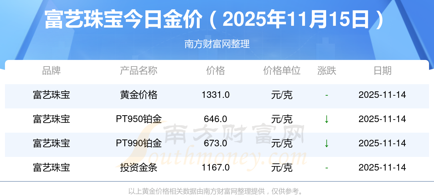 今日富艺珠宝黄金价格查询_富艺珠宝一克金子的市场价格查询,一起来看看吧!