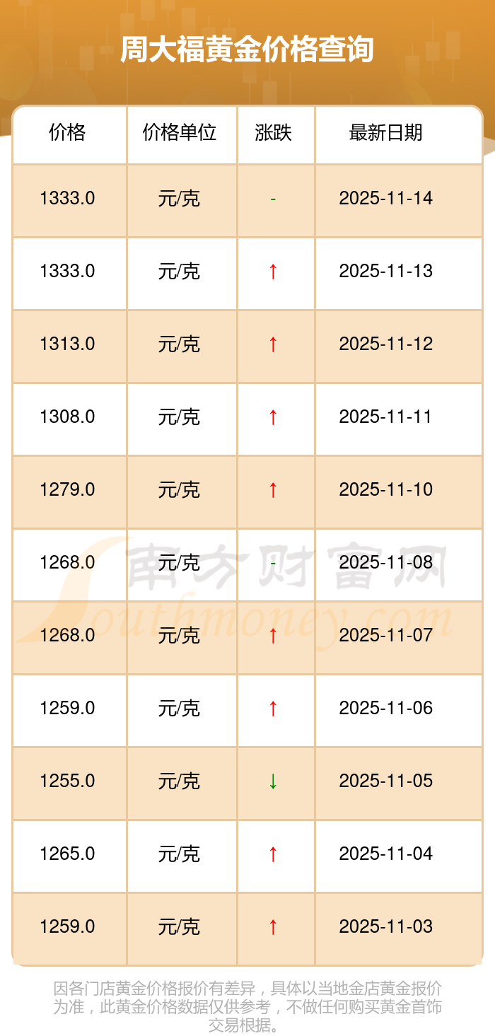 今日周大福 黄金价格的最新定价为1333.0元/克。