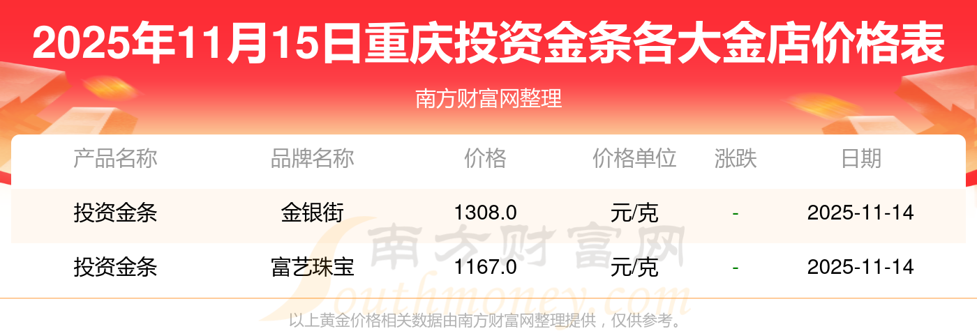 一、2025年11月15日今日投资金条价格_重庆各金店投资金条现在多少钱一克
