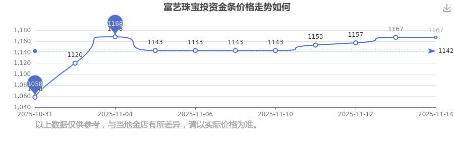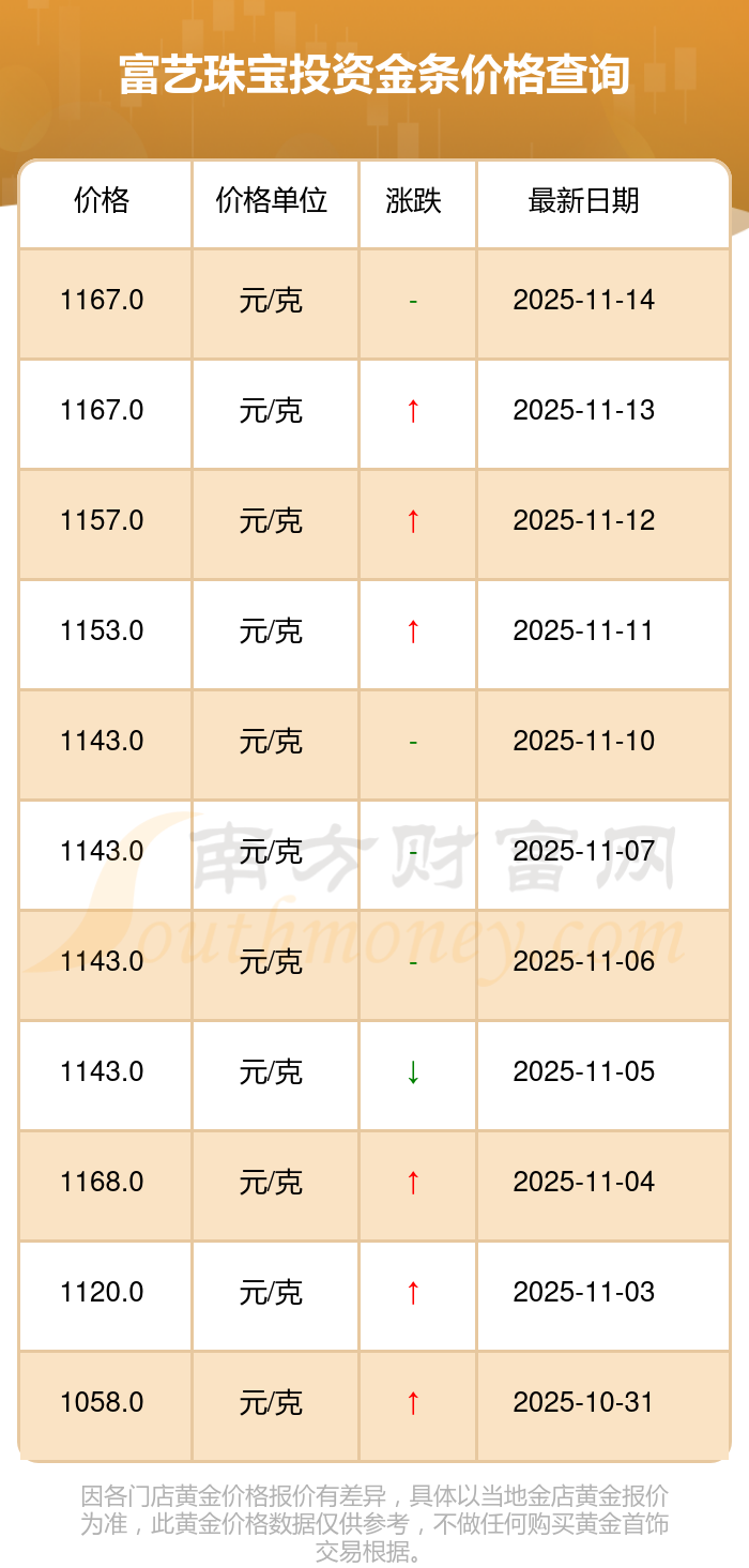 今日富艺珠宝投资金条价格:1167.0元/克。