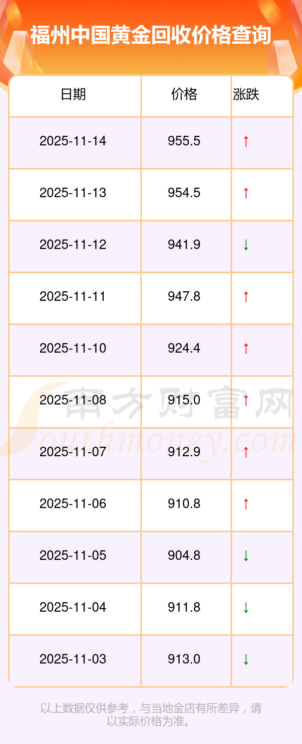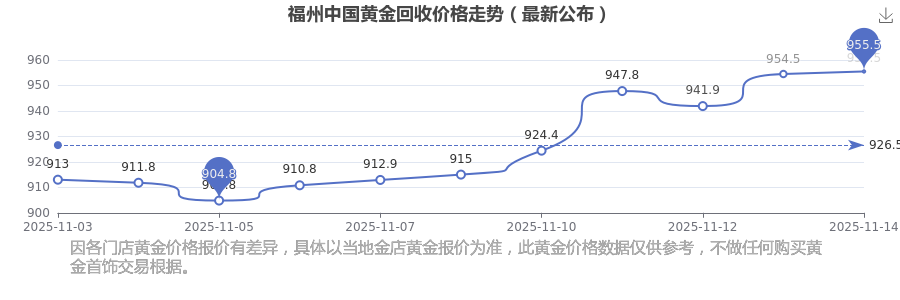 今日(2025年11月15日),955.5元/克是福州中国黄金回收价的价格标准。