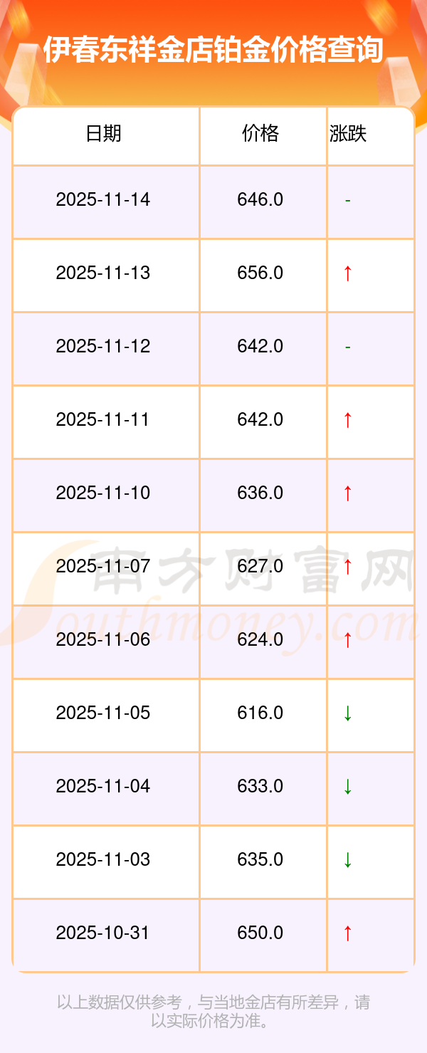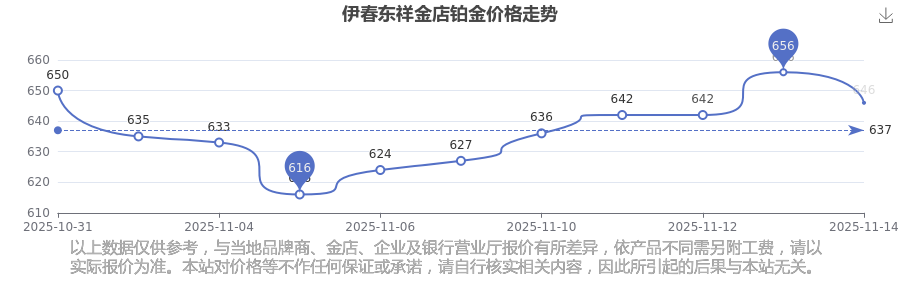 2025年11月15日,伊春东祥金店的铂金价格标价达到 646.0元/克。