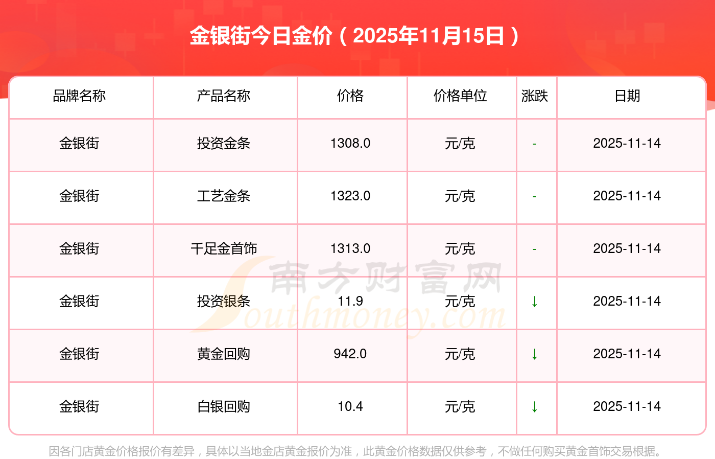 金银街今日金价的具体数字是怎样的?数据来了:黄金价格1333.0元/克,铂金价格646.0元/克,饰品金价(内地)1333.0元/克,黄金饰品(香港)46320.0,铂金价格(香港)18410.0,金条价格(香港)41780.0,金条金价(内地)1167.0元/克,黄金价格1322.0元/克,铂金价格600.0元/克,足金价格1322.0元/克,黄金价格1295.0元/克。