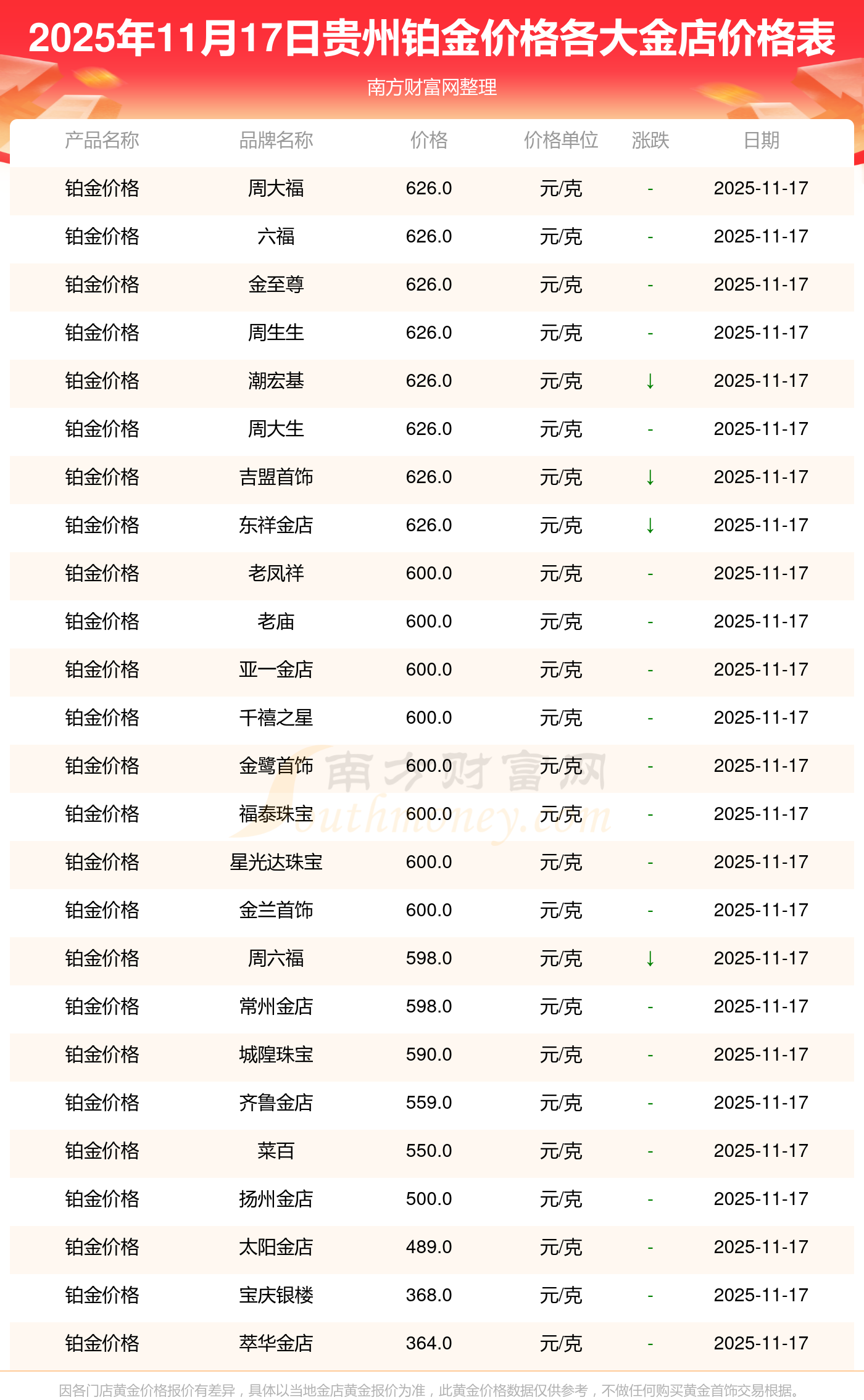 一、贵州各金店铂金价格表最新公布 贵州各金店铂金价格的价格行情如何?