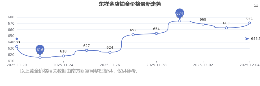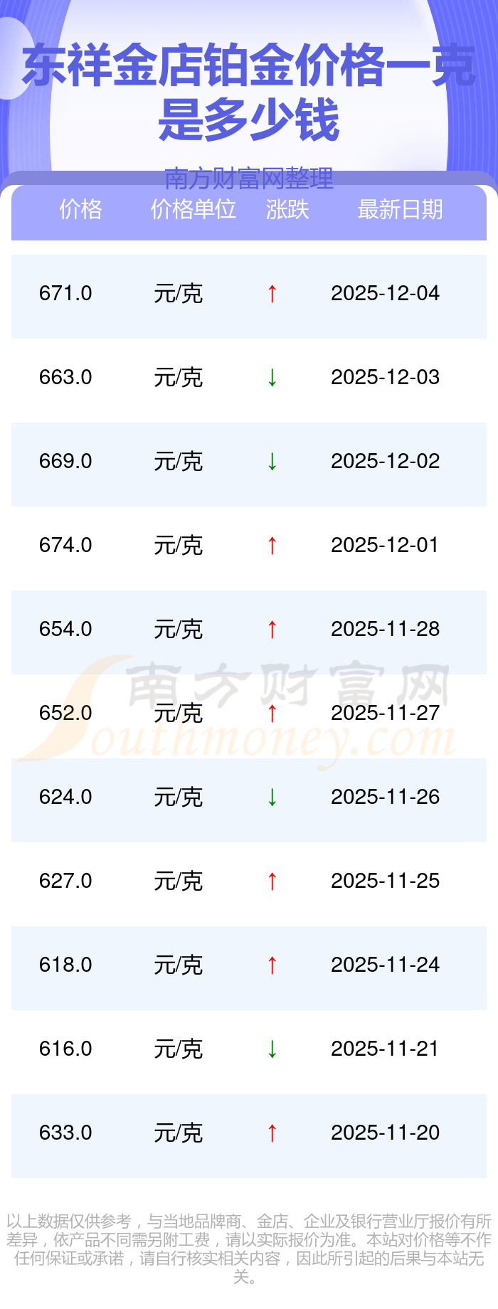 2025年12月4日东祥金店铂金价格最新是671.0元/克。