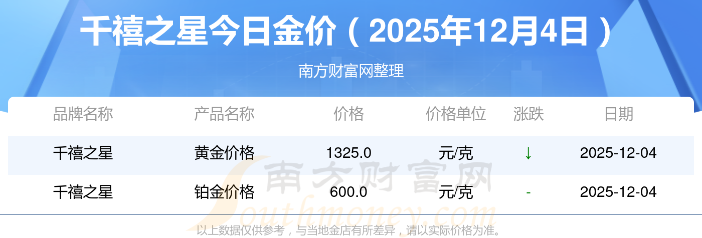 千禧之星金价今日价格:黄金价格1328.0元/克,铂金价格671.0元/克,饰品金价(内地)1328.0元/克,黄金饰品(香港)46730.0,铂金价格(香港)19260.0,金条价格(香港)42160.0,金条金价(内地)1165.0元/克,黄金价格1325.0元/克,铂金价格600.0元/克,足金价格1325.0元/克,黄金价格1326.0元/克。