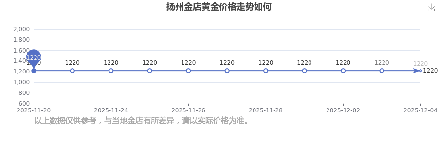 今天黄金价格几何?现在每克黄金值多少钱?黄金是一种优良的导电导热材料,有着良好的导热特性。它常用于电子工业中的特殊电路设计,这得益于其化学稳定性高、抗氧化性强,可制作高精度电子元件。1220.0元/克是扬州金店在今日给出的 黄金价格最新价格。