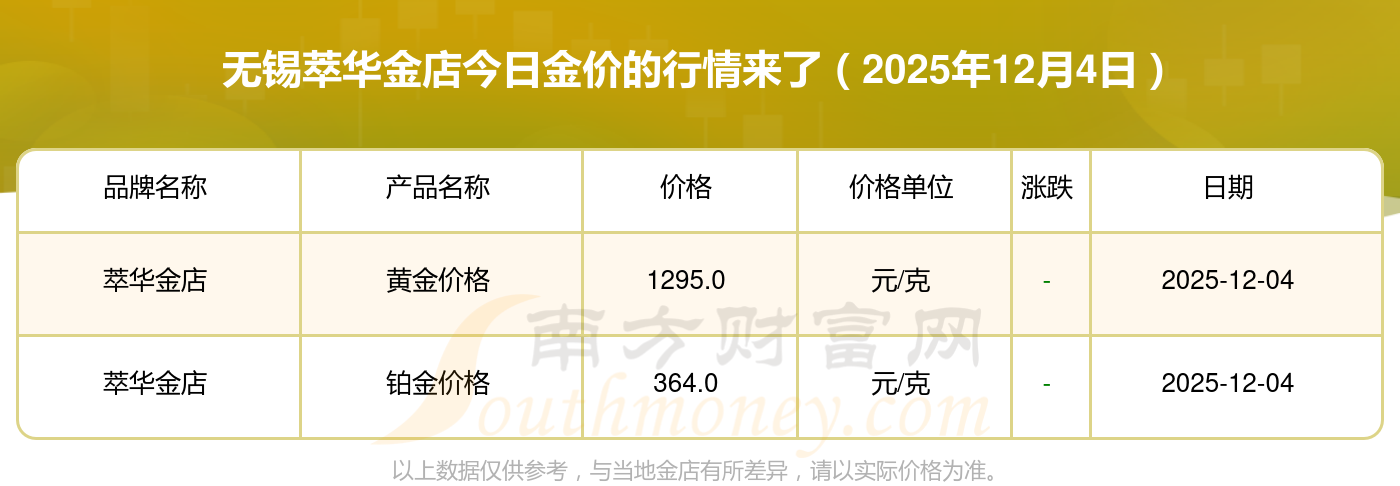 2025年12月4日萃华金店金条金价查询_今日无锡萃华金店金价表一览