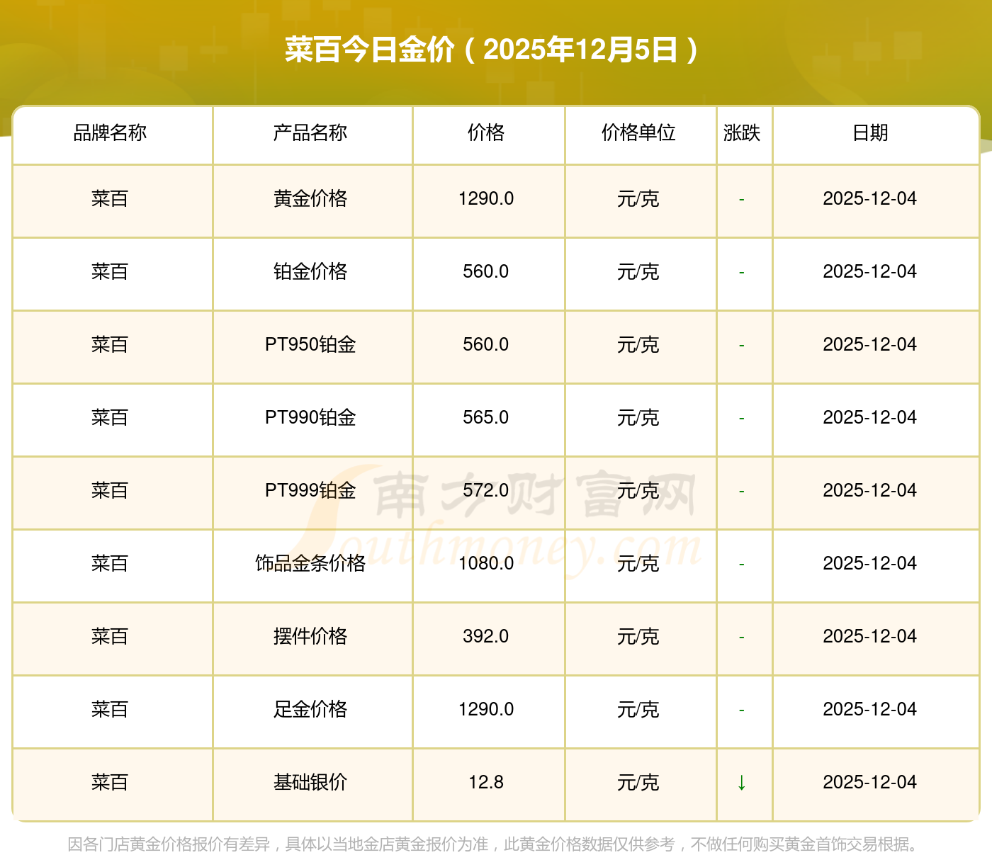 现在菜百黄金价格是多少钱1克_2025年菜百今日金价是多少钱一克,最新菜百查询,2025年12月5日菜百黄金价格现在每克多少钱?最新菜百黄金价格报价公布,一起来看看吧!