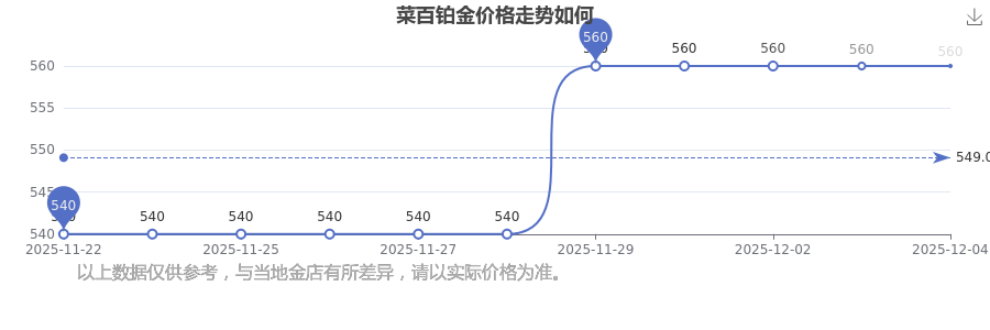 2025年12月5日菜百铂金价格查询:560.0元/克。