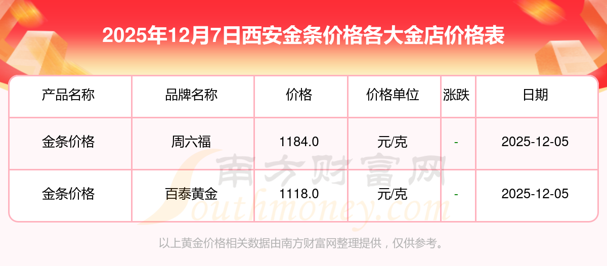 今日西安各金店金条价格今天多少一克?2025年12月7日金条价格最新查询表