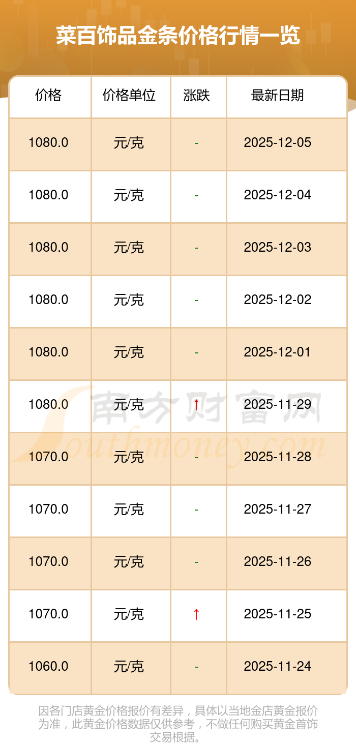 以上数据仅供参考,与当地品牌商、金店、企业及银行营业厅报价有所差异,依产品不同需另附工费,请以实际报价为准。本站对价格等不作任何保证或承诺,请自行核实相关内容,因此所引起的后果与本站无关。