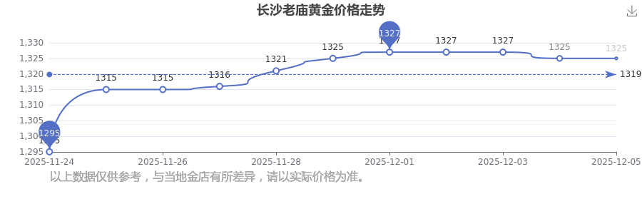 2025年12月7日,长沙老庙的黄金价格标价达到 1325.0元/克。