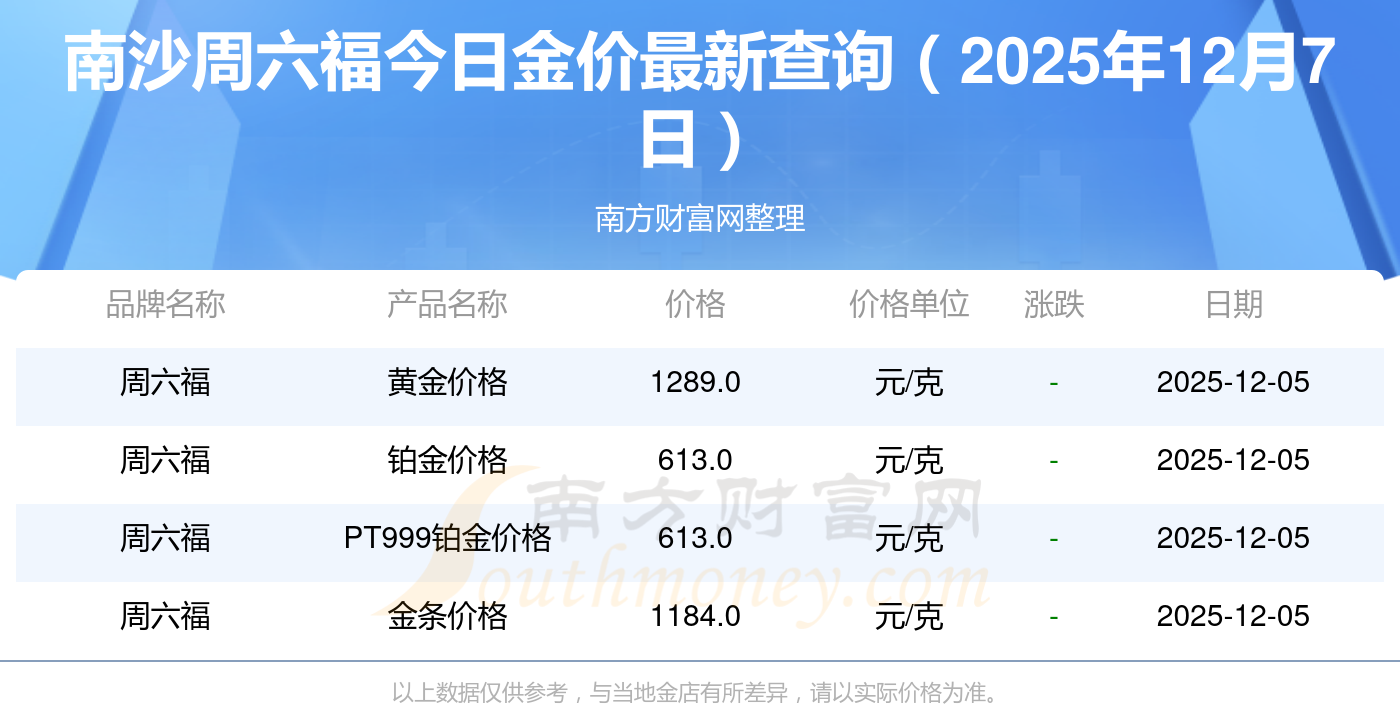 南沙周六福黄金今日价格是多少,今日国内金价实时查询,随小编来了解一下详情。