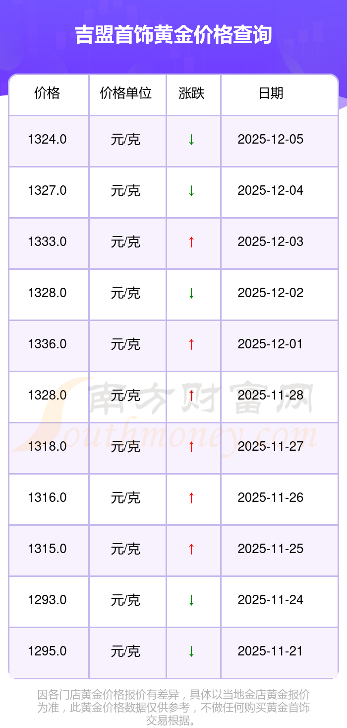 今日黄金价格是怎样的?当下黄金一克要卖多少钱?属于优良导电导热材料的黄金,有良好的导热特性。鉴于其化学稳定性高、抗氧化性强,可制作高精度电子元件,因此常用于电子工业的特殊电路设计中。吉盟首饰今日黄金价格的最新市场行情价为1324.0元/克。