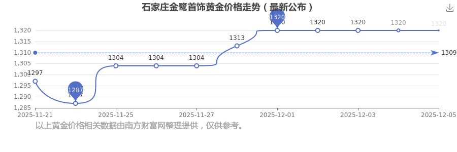 石家庄金鹭首饰现在黄金价格每克多少?想了解今天黄金一克的行情价是多少钱?今日石家庄金鹭首饰黄金价格查询,2025年12月7日这一天,石家庄金鹭首饰的黄金价格以 1320.0元/克的价格售卖。