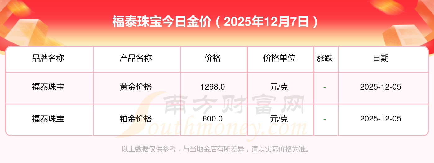 你了解福泰珠宝金价今日价格吗?以下是详情数据:黄金价格1328.0元/克,铂金价格662.0元/克,饰品金价(内地)1328.0元/克,黄金饰品(香港)46550.0,铂金价格(香港)18970.0,金条价格(香港)41990.0,金条金价(内地)1165.0元/克,黄金价格1325.0元/克,铂金价格600.0元/克,足金价格1325.0元/克,黄金价格1289.0元/克。