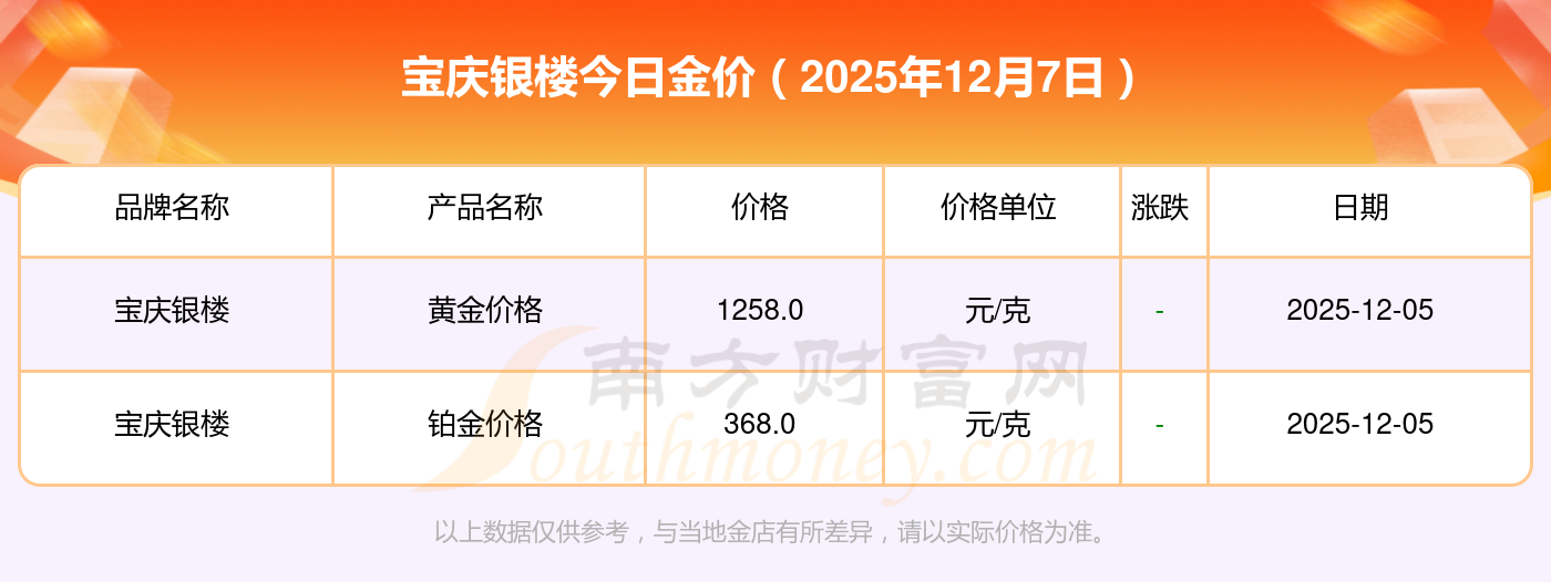宝庆银楼现在金价多少钱一克?宝庆银楼今天黄金价格多少一克?最新宝庆银楼查询,2025年12月7日宝庆银楼黄金价格现在每克多少钱?最新宝庆银楼黄金价格报价公布,一起来看看吧!