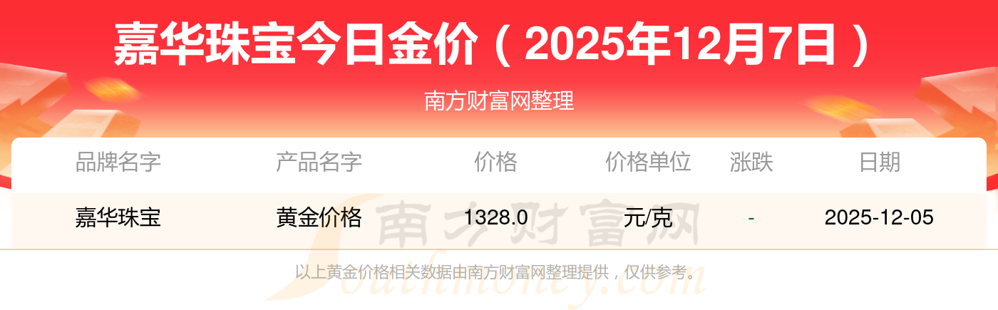 2025年12月7日周大福、周大福、周大福、周大福、周大福、周大福、周大福、老凤祥、老凤祥、老凤祥、周六福等各大金店品牌黄金价格最新价格如下:周大福黄金价格1328.0元/克,周大福铂金价格662.0元/克,周大福饰品金价(内地)1328.0元/克,周大福黄金饰品(香港)46550.0,周大福铂金价格(香港)18970.0,周大福金条价格(香港)41990.0,周大福金条金价(内地)1165.0元/克,老凤祥黄金价格1325.0元/克,老凤祥铂金价格600.0元/克,老凤祥足金价格1325.0元/克,周六福黄金价格1289.0元/克。