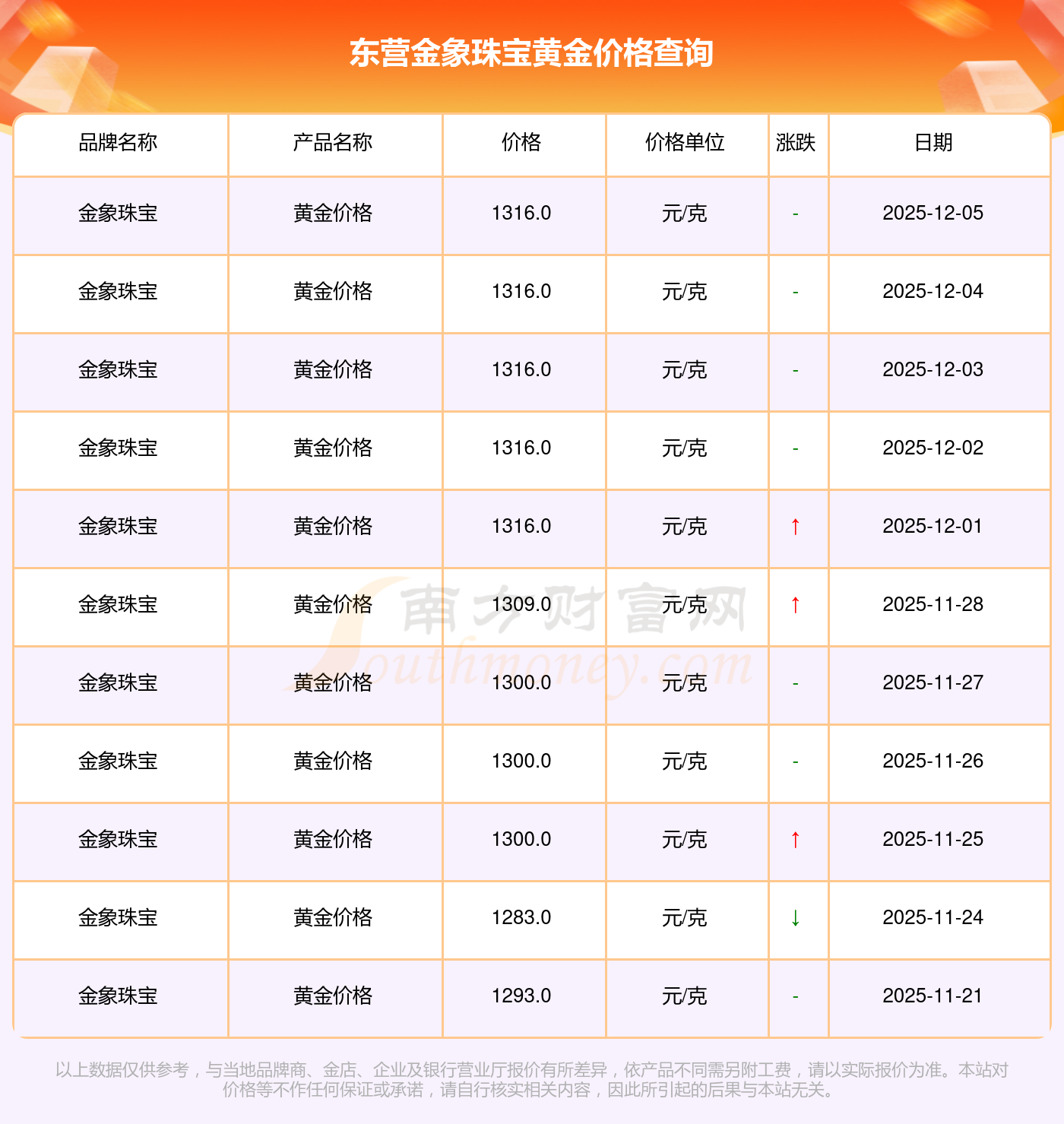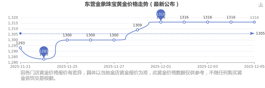 今日(2025年12月7日),1316.0元/克是东营金象珠宝黄金价格的价格标准。
