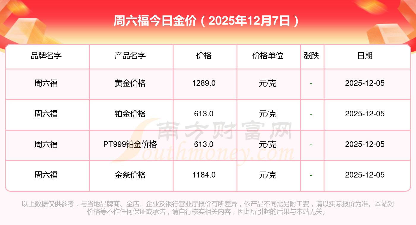 周六福今日金价的具体数字是怎样的?数据来了:黄金价格1328.0元/克,铂金价格662.0元/克,饰品金价(内地)1328.0元/克,黄金饰品(香港)46550.0,铂金价格(香港)18970.0,金条价格(香港)41990.0,金条金价(内地)1165.0元/克,黄金价格1325.0元/克,铂金价格600.0元/克,足金价格1325.0元/克,黄金价格1289.0元/克。