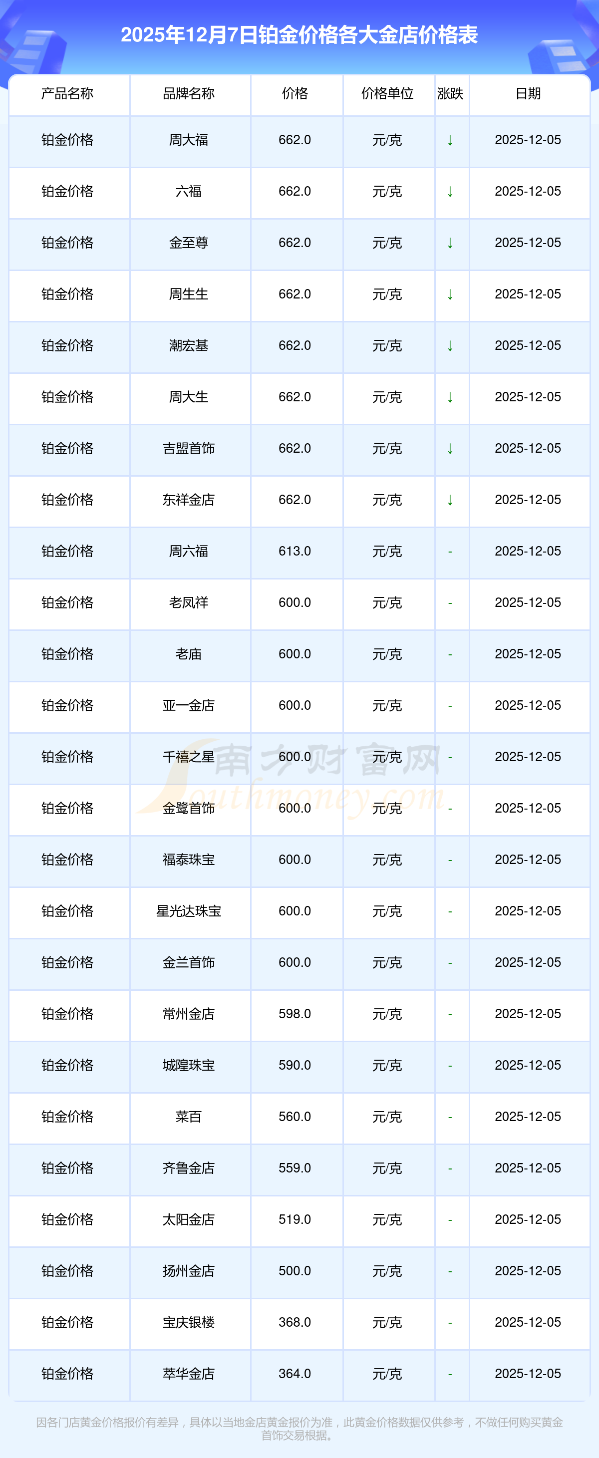 以上数据仅供参考,与当地金店有所差异,请以实际价格为准。