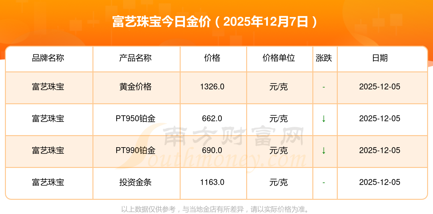 富艺珠宝黄金在今日的定价为多少?黄金价格1328.0元/克,铂金价格662.0元/克,饰品金价(内地)1328.0元/克,黄金饰品(香港)46550.0,铂金价格(香港)18970.0,金条价格(香港)41990.0,金条金价(内地)1165.0元/克,黄金价格1325.0元/克,铂金价格600.0元/克,足金价格1325.0元/克,黄金价格1289.0元/克。