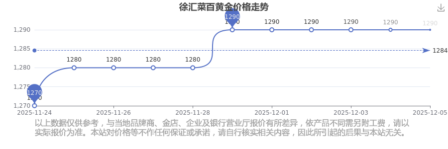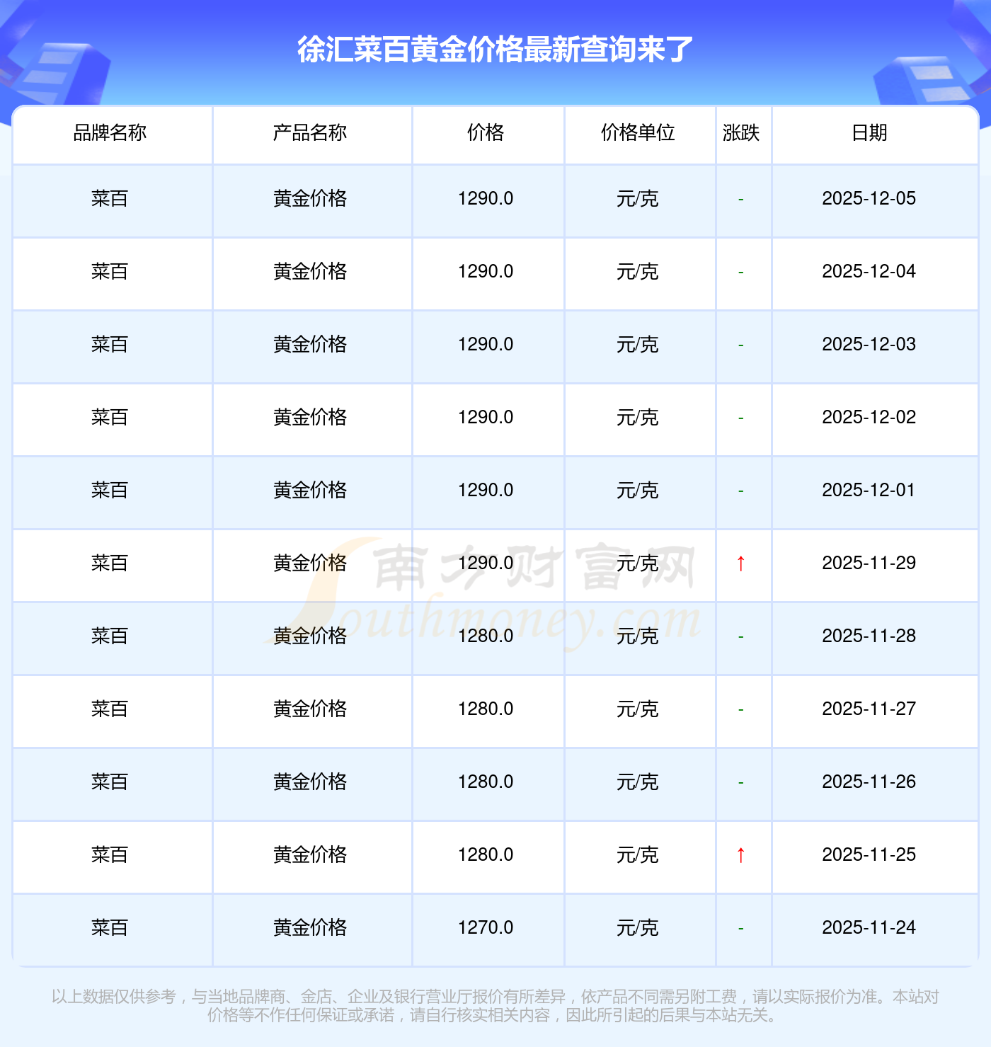 徐汇菜百在 2025年12月7日,黄金价格的售卖价格是 1290.0元/克。