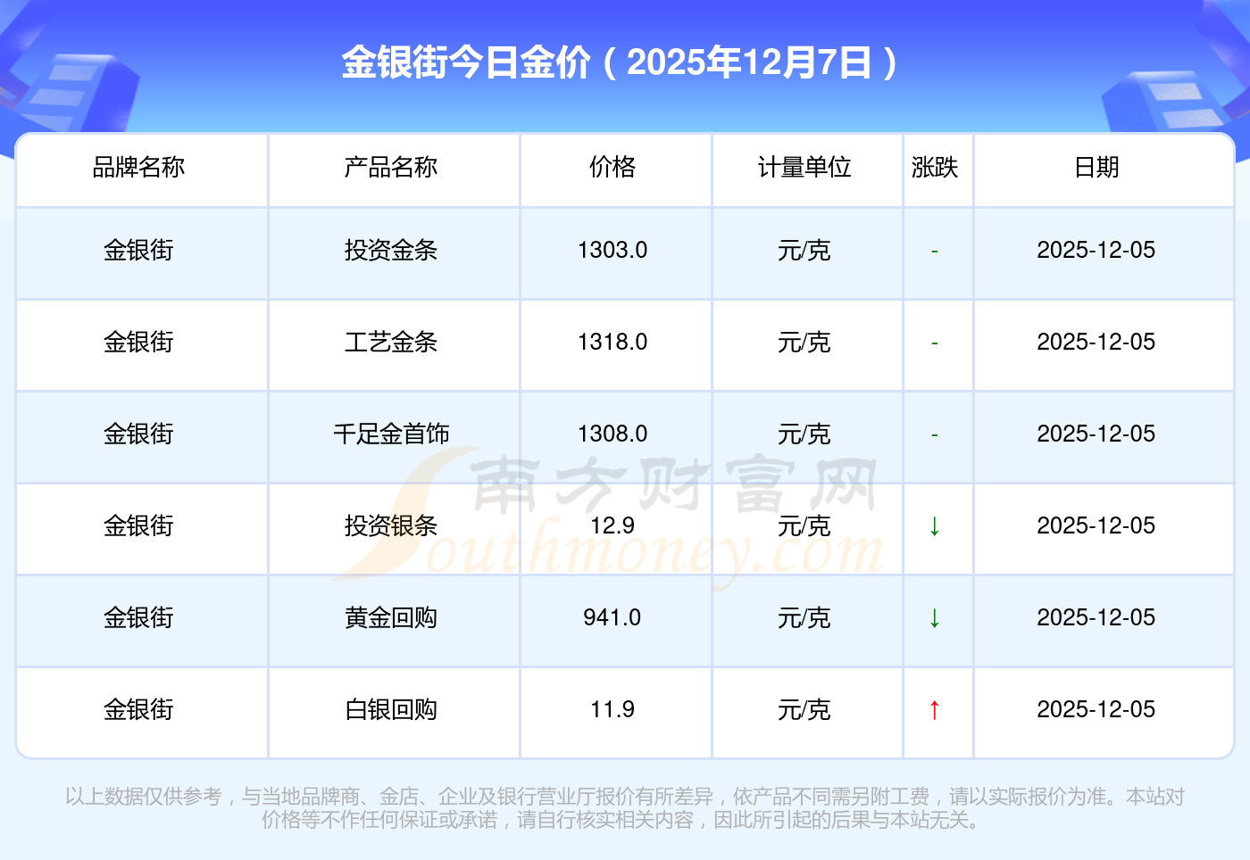 2025年12月7日金银街金条多少钱1克 现在郑州金银街黄金价格查询