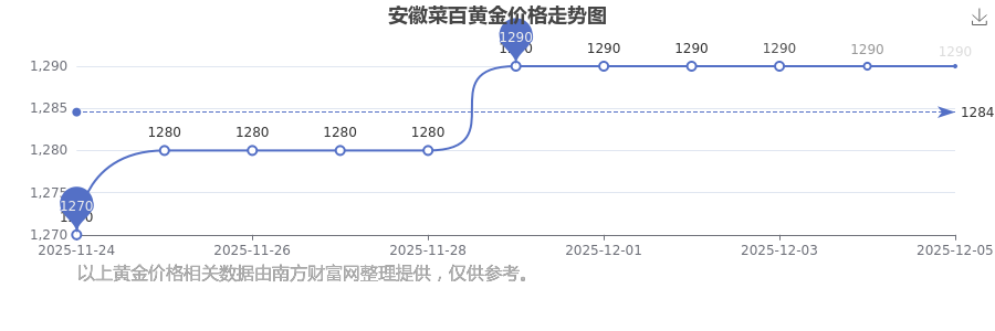 今日(2025年12月7日),安徽菜百黄金价格:1290.0元/克。