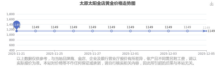今日(2025年12月7日),1149.0元/克是太原太阳金店黄金价格的价格标准。