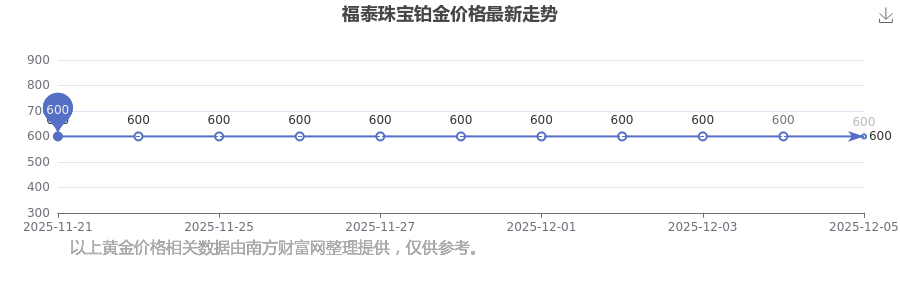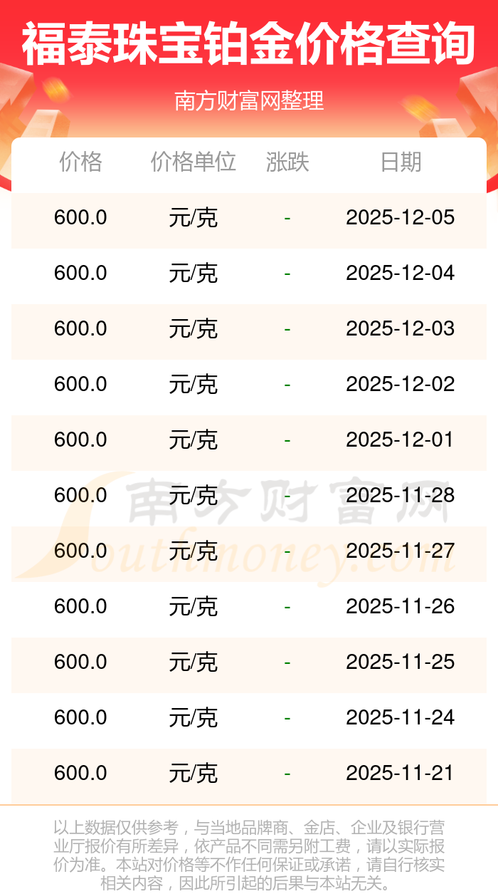 今日福泰珠宝 铂金价格,最新确定为600.0元/克。