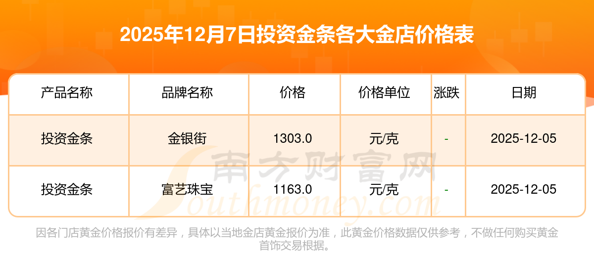 2025年12月7日各大金店投资金条价格多少钱1克,各大金店投资金条价格最新来了,一起来看看吧!